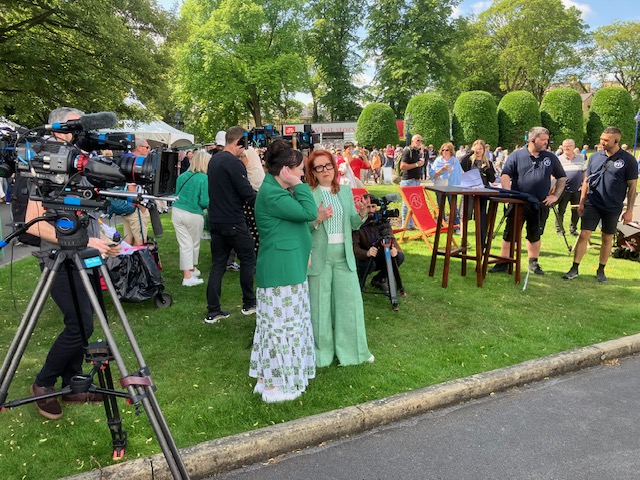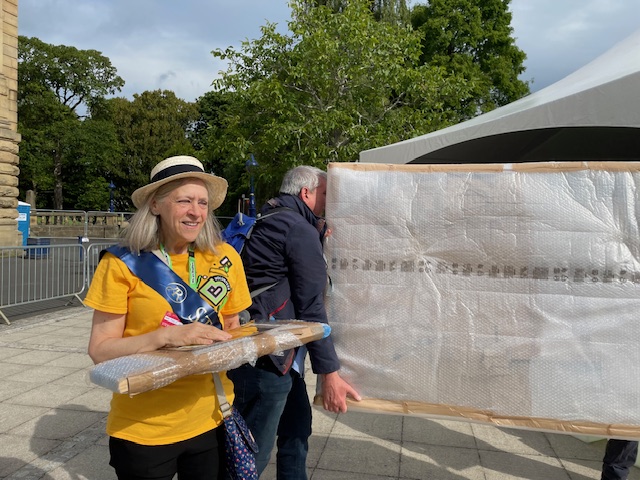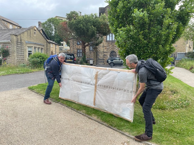 You can see some “behind the scenes” pictures here, including one of Mary White, a Bradford 2025 volunteer who was on duty at Cartwright Hall on the day of filming, who is also a member of our congregation. You might also notice Andy McCarthy, Bradford Cathedral Chief of Operations, lending a hand with the heavy lifting of the altar frontal!