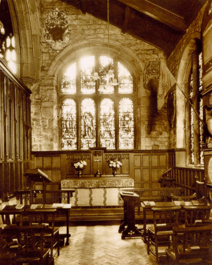 The altar frontal was made in the autumn of 1918, for the chapel at the Abram Peel Hospital in Bradford, a hospital for the treatment of soldiers suffering from shellshock and neurasthenia. It was given to Bradford Cathedral in 1920 after that hospital closed, and was used for many years in the Bolling Chapel of the Cathedral (pictured).